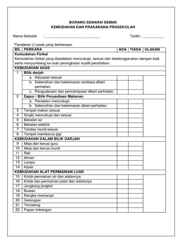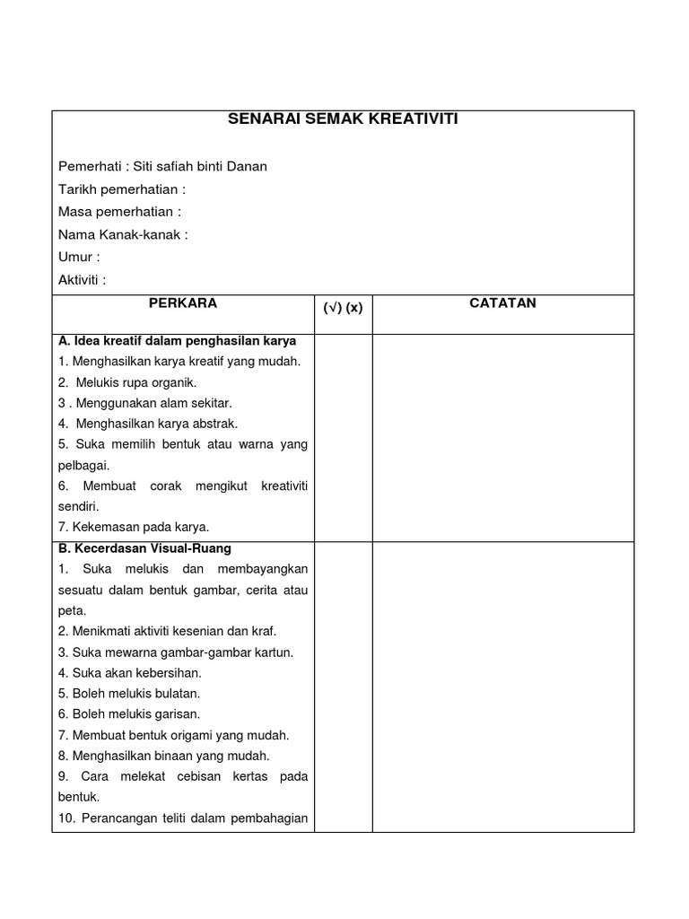 24 Senarai Semak Contoh Rekod Pentaksiran Prasekolah Gif Senaraivlogs
