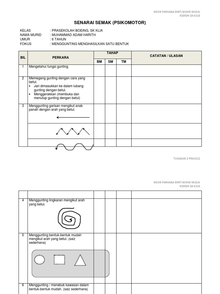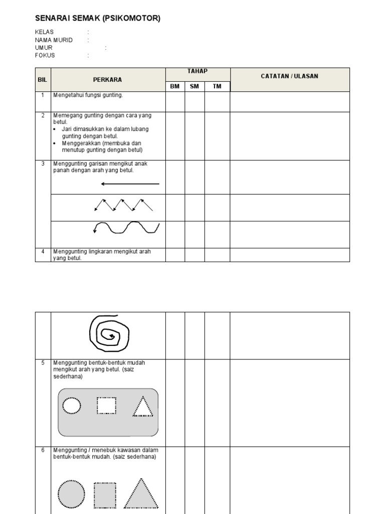 Contoh Senarai Semak Motor Halus Prasekolah Pdf